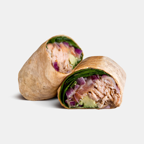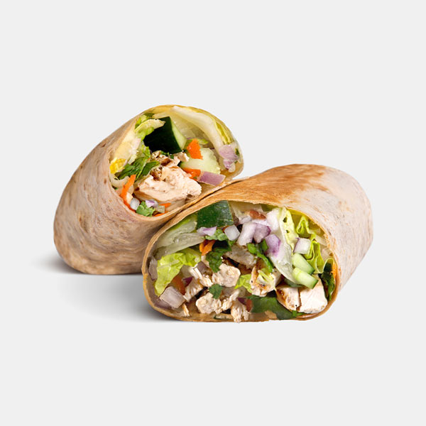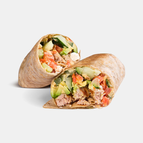 Grilled Chicken (ABF), Turkey Bacon Bits, 4 Egg Whites*, Cheddar, Onion, Avocado, Black Beans, Cilantro, Red Peppers, Tomatoes. Served on Whole Wheat Tortilla with Side of Fruit.