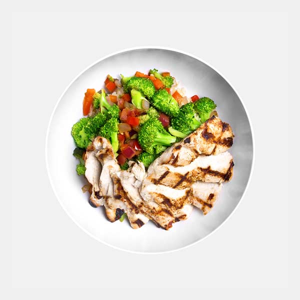 Grilled Chicken (ABF), Broccoli, Red Peppers, Red Onions, Green Onions, Housemade BBQ Sauce.