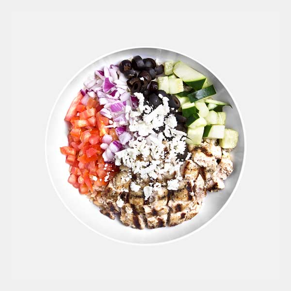 Turkey Patty (ABF), Feta Cheese, Hummus, Cucumbers, Tomatoes, Black Olives, Red Onions.