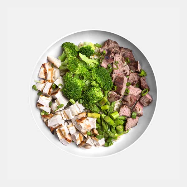 Grilled Chicken (ABF), Certified Angus Beef® Steak*, Asparagus, Broccoli, Green Onions, Peanuts, Housemade Spicy Thai Peanut Sauce.